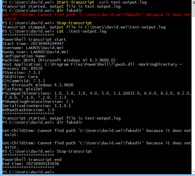 Power shell: Start-Transcript and Stop-Transcript help you log a session.